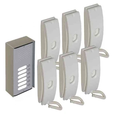 A robust kit consisting of a Deluxe Aluminum Panel and Speaker Amplifier, complete with Volume Control, nine stylish Handsets and Power Supply Unit.