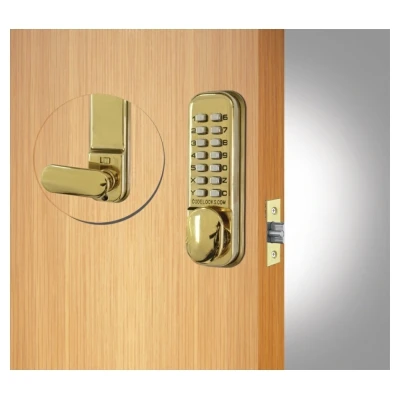 Functionally the same as the CL150 with the addition of a slide button which can be used to hold open the latchbolt for free entry without operating the code (when the lock is not required to be operational).