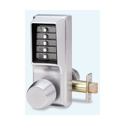 The 1000 Series lock provides fully mechanical pushbutton access control with no electrical wiring, electronics, or batteries. Exterior access is by combination. Egress is by interior knob and is free at all times. 1000 Series locksets are the best choice for limiting access to high-traffic, security-sensitive areas in commercial, institutional, residential, and industrial buildings. These locks are ideal for locations with a high personnel turnover rate such as data processing centers, employee entrances, R&D labs, apartments, dormitories, and restricted areas in hospitals and airports.