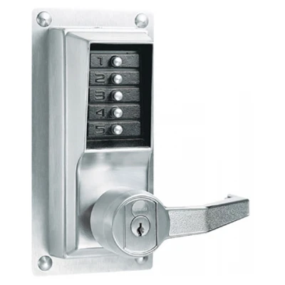 Model LLP1020B (LP1000) is based on the L1000-1 on the Keypad side, however on the internal side of the doors is fitted either a Panic Latch or Push Pad making this lock ideal for Emeregency Doors. It is also supplied with a key override facilty, two versions are made, one supplied with 1 Control & 2 User Keys, the second without cylinders to allow you to create  a suited system with other Locks.