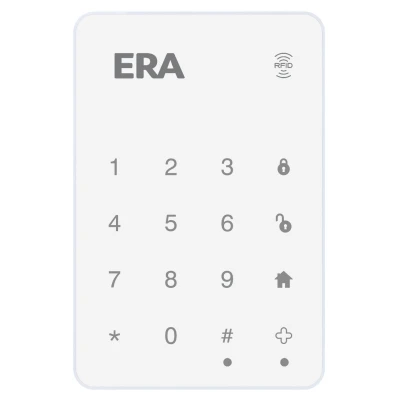 The wireless touch keypad can be installed in addition to an ERA Protect Alarm for arming and disarming after inputting a passcode. Or using the compatible RFID tags.